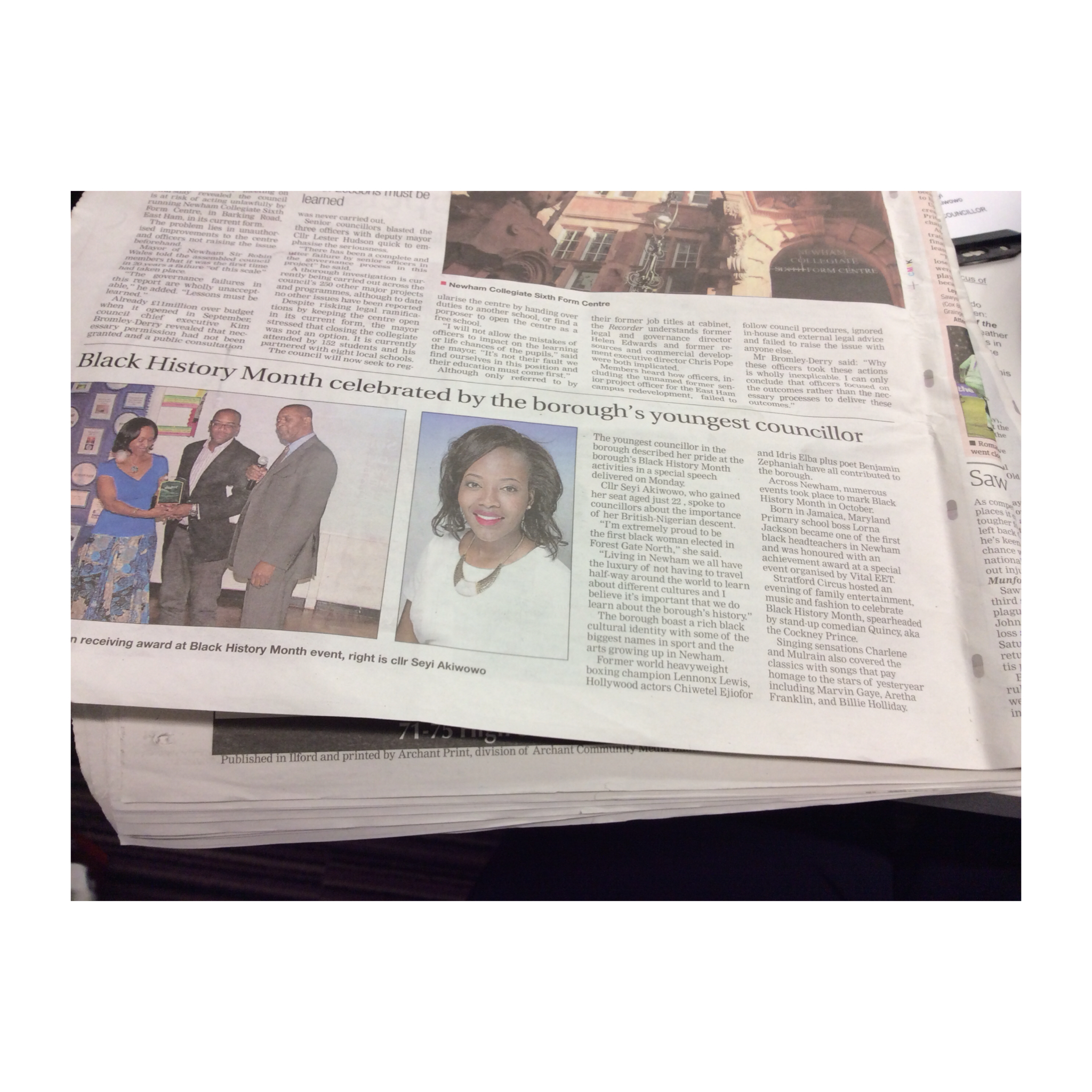 To be elected to this Council as a Labour representative and stand here speaking in this chamber is a great honour. To be elected as the first young black woman by the residents of Forest Gate North, the ward where I grew up is also a very personal honour.