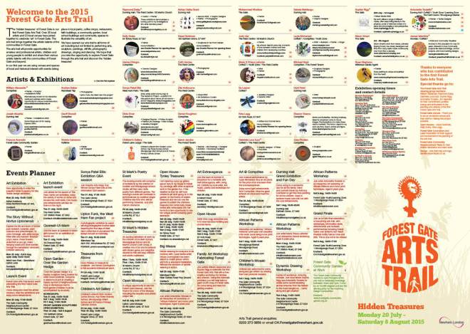 I’ve had really great time being involved in the Forest Gate Arts Trail Steering Committee with Cllr Dianne Walls, William Alexander, Raymond Daley, Gabriella Luca Lozzi, Sophie Rigg, Antonietta Torsiello and Jim Valentine. We’ve come a long way and I can’t believe the FGAT is only 4 days away!