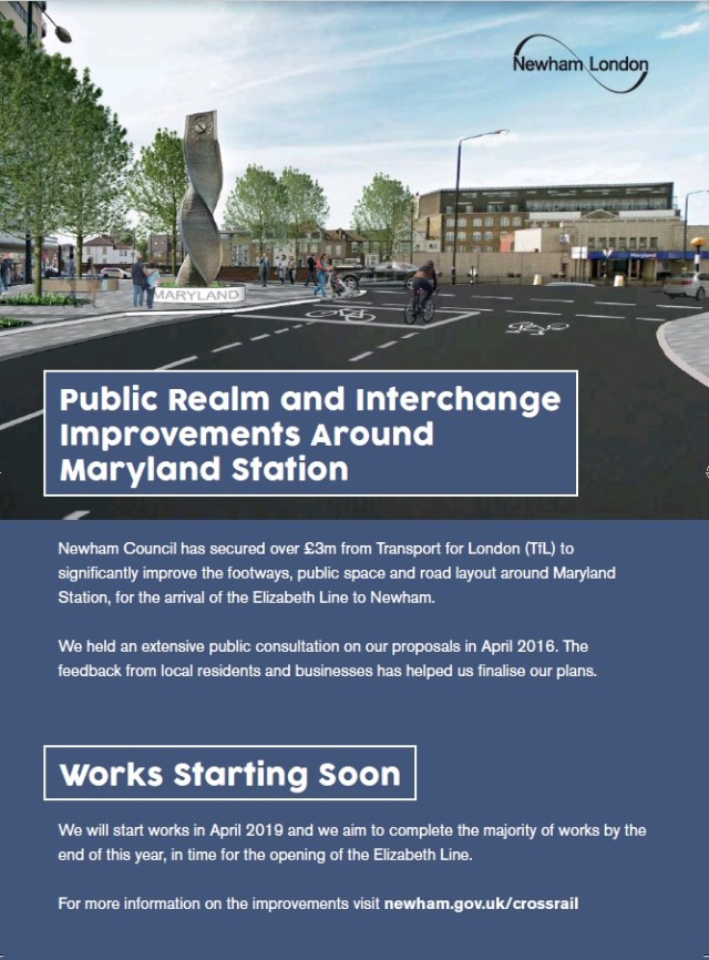 Just a quick post to share a very useful leaflet that I was sent, re: the Crossrail public realm works that are shortly beginning in Maryland. Click on the picture, or on the link below, to read the full leaflet which includes an overview of the work, and (importantly, in case of disruption, or questions) contact details for the contractor.