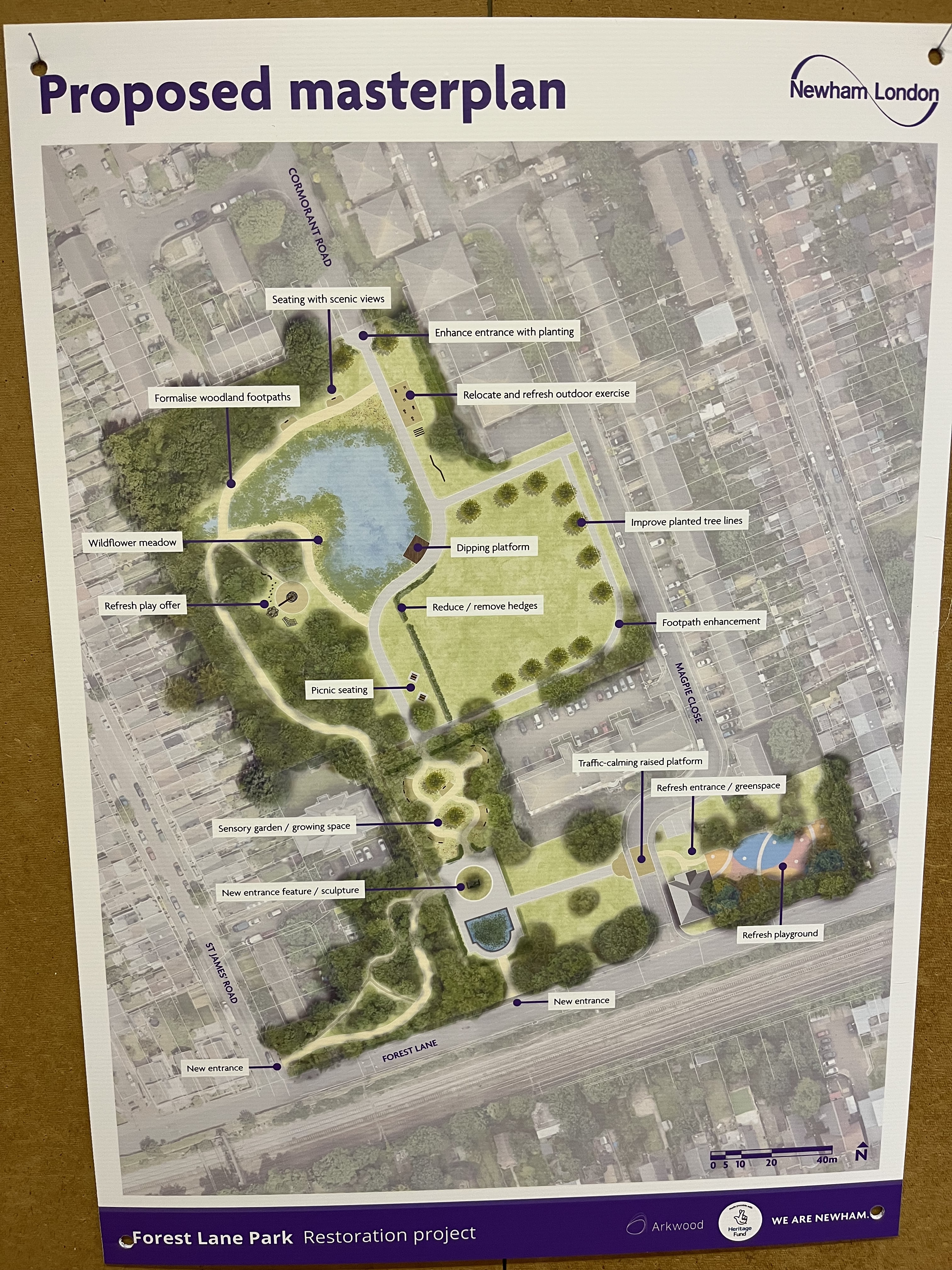 There was a meeting at Magpie Lodge in the park in January, to share some updates about the work planned to improve Forest Lane Park. I wanted to share some of that here.